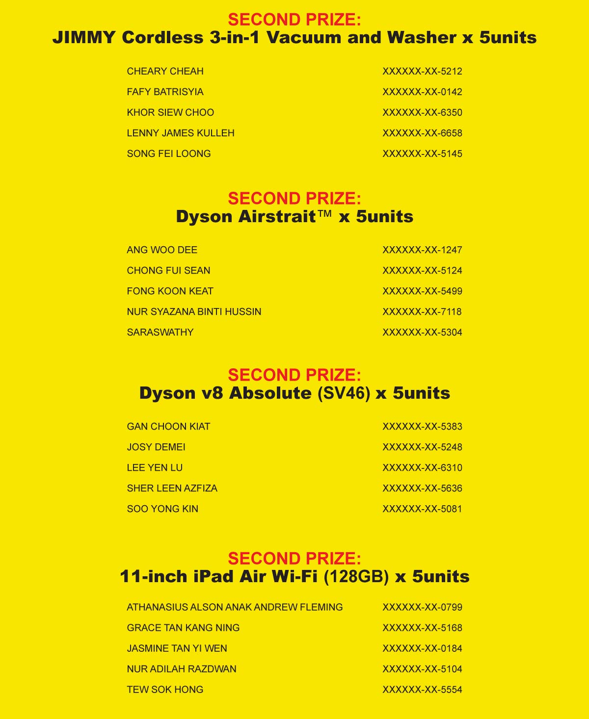 100 Years Celebration Buy & Win Winner List