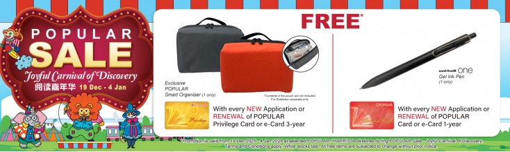 • Immediate 10%* storewide discount at over 150 POPULAR bookstores in Malaysia, Hong Kong and Singapore as well as HARRIS bookstores and CD RAMA Departments in Malaysia Only.