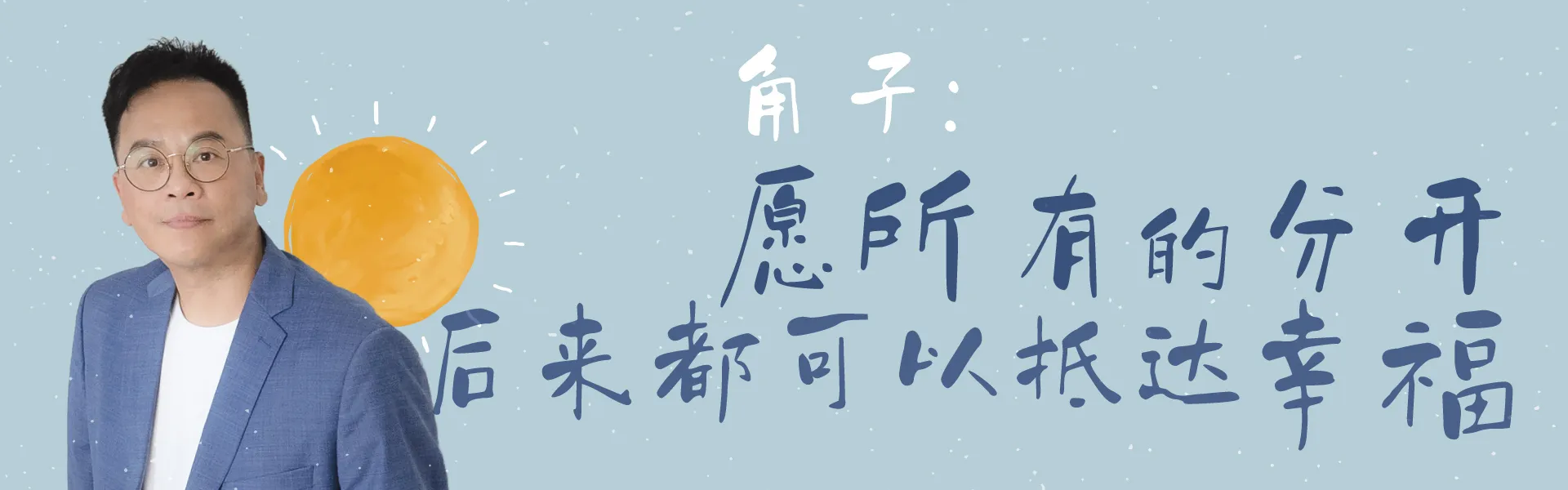 面对舍不得与放不下,角子引用书中一句话“你在这里耕耘,将来会在那里收获。”他指出,虽然爱一个人未必能获得对等的回报,但是在爱里学习与成长,终将让你遇见那个同样愿意为爱耕耘的人,两人彼此耕作,把各自的田耕好,合成一片更大的牧场,这才是真正的“幸福”。