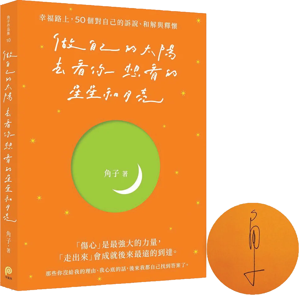 角子在新书《做自己的太阳,去找你想要的星星和月亮》自序中提到,创作这本书期间,自己在感性与理性之间摆荡。他将四个月的创作时间线一分为二,在各两个月里,分别扮演着冷静与疯癫的角子。他把自己带入了书中真实故事《一次就好》主角“玲玲”的思绪里,并随着她的情绪跌宕起伏,甚至听着她推荐的歌曲时默默落泪:“可能她的故事感动了我,也可能我想起自己也曾在人生过程中,经历了与她相似的时刻。”多年前,他在一段感情中,经历了未曾想过的伤以及路程,至今想起仍会流泪:“许多深厚的感情,即便明白了、释怀了,也还是很愿意再用眼泪,去标记它的难得与无法取代。”