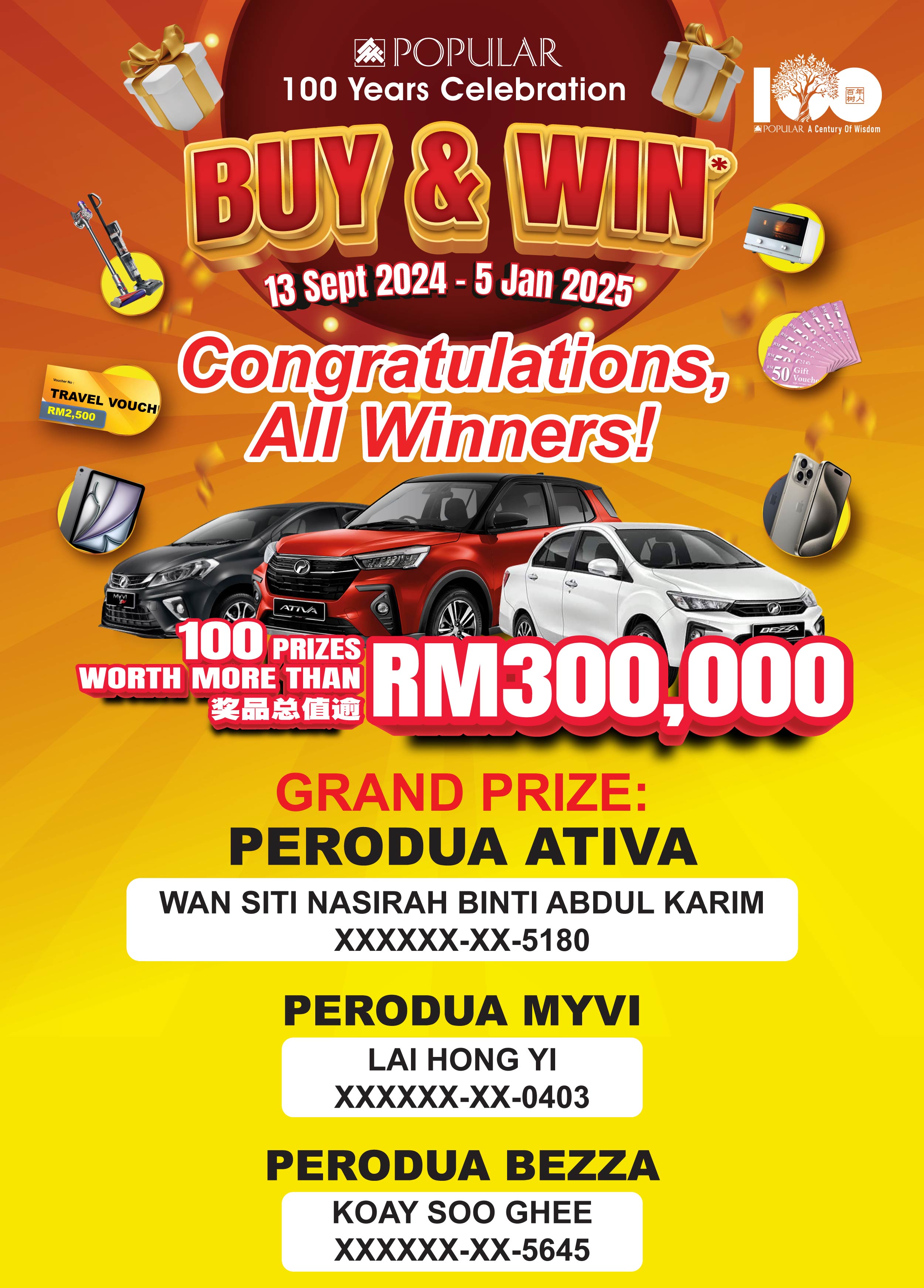 100 Years Celebration Buy & Win Winner List